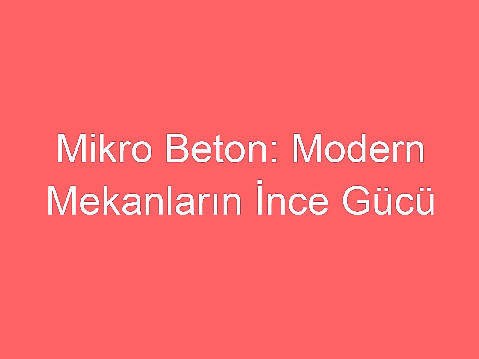 Mikro beton, sadece bir yüzey kaplama malzemesi değil; mekânın karakterini baştan aşağı değiştiren bir tasarım unsurudur. Betonun ham ve doğal dokusunu estetik bir zarafetle birleştirir. Ev, ofis, otel, mağaza, restoran, sanat galerisi ya da spa merkezleri gibi alanlarda kullanıldığında, modernliğin yanında huzurlu bir atmosfer de yaratır. Bu nedenle mikro beton, son yıllarda dünya çapında mimarlar, iç mimarlar ve zemin kaplama uzmanları tarafından en çok tercih edilen malzemelerden biri haline gelmiştir.